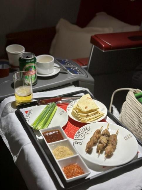 青岛出港国际航线配备的淄博烧烤和在2025年春节期间上新的“大董多多芝士烤鸭卷”,都获得了旅客的高度认可。“淄博烧烤”还让首都航空荣获了《中国民航》杂志“天选·2024年度航旅榜单”的“年度天空赏味”奖项。“大董多多芝士烤鸭卷” 是首都航空精心挑选的融合了中西风味的创新美食,酥脆的烤鸭搭配香浓的芝士,既有传统烤鸭酥而不腻的迷人口感,又融入了创新元素带来的丰富味觉层次,口感层次丰富,在青岛飞往伦敦、悉尼、墨尔本的国际航班率先上线后,“点击率”远远超过了其他菜品,成为了当之无愧的机上“网红”。