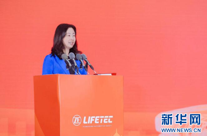 图采埃孚集团执行副总裁、中国区总裁、亚太区运营总裁汪润怡在投产仪式上致辞。新华网发 李岿 摄
