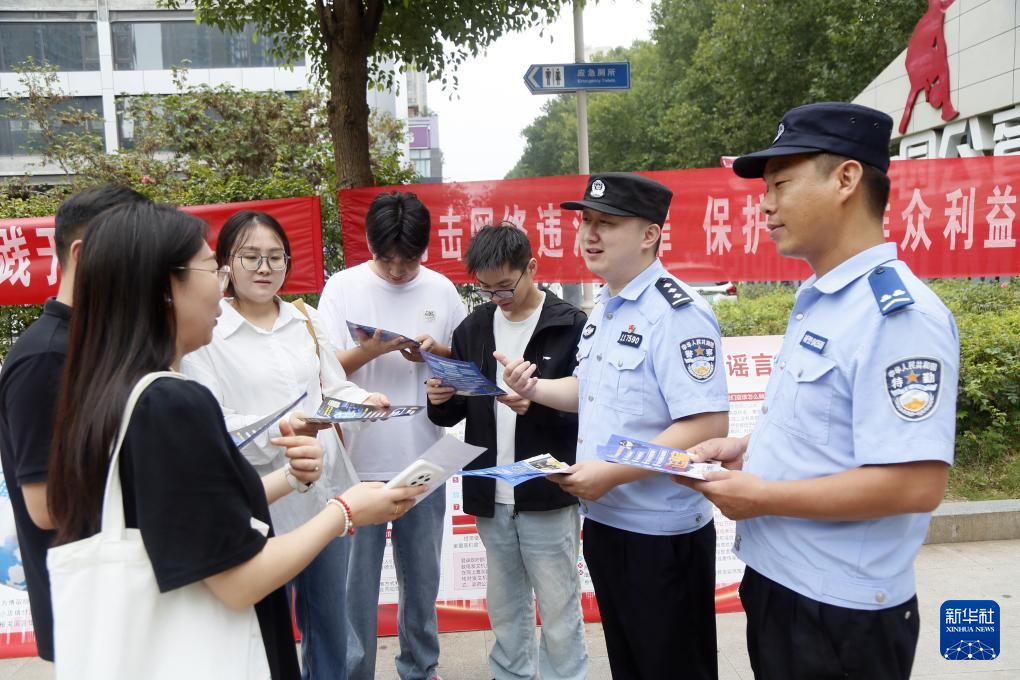 9月15日,河南省洛阳市汝阳县公安局网络安全保卫大队民辅警在文化广场为居民讲解网络安全知识。
