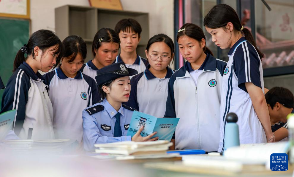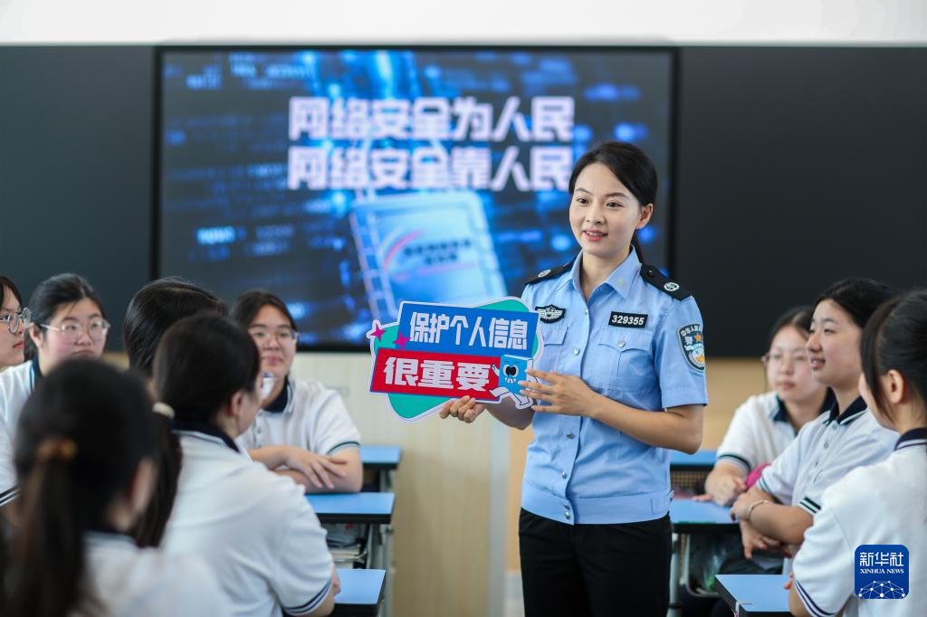9月15日,民警在贵州省铜仁市玉屏侗族自治县黔东民族寄宿制中学给学生普及网络安全知识。