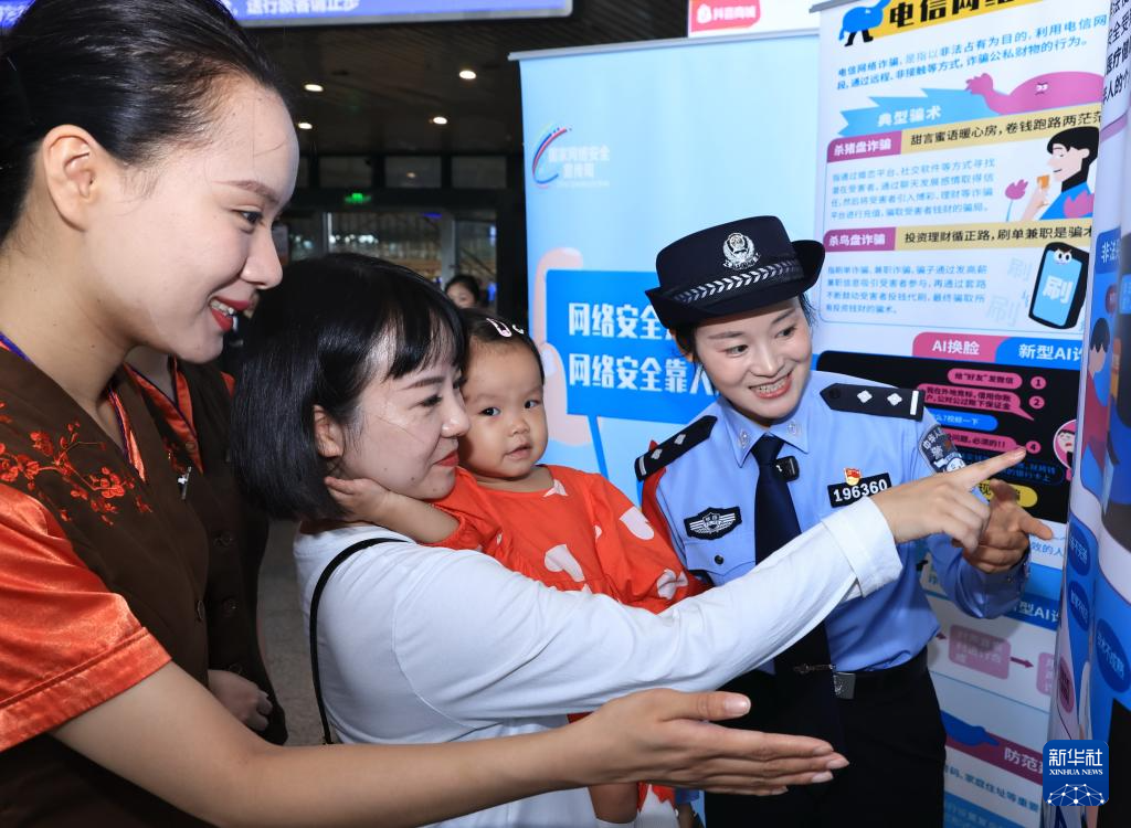 9月15日,湖北武汉铁路公安处武汉站派出所民警在武汉站为旅客讲解网络安全知识。