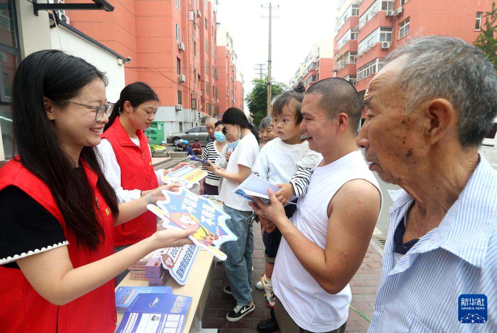 9月15日,河南省洛阳市汝阳县工业信息化和商务局工作人员在文化广场为居民讲解网络安全知识。