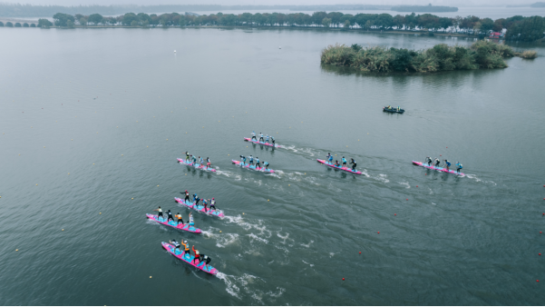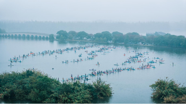 900多名来自全国各地的参赛选手齐聚尚湖,在波光粼粼的湖面展开速度与技巧的巅峰对决。赛事创新采用 “冠军赛总决赛 + U系列赛”双赛联动模式,既展现了国内桨板运动的最高竞技水准,为专业选手提供了切磋提升的顶级平台,又为青少年搭建了专业化成长通道,实现了竞技体育与群众体育的协同共进。专业选手的精彩角逐为赛事注入了高强度的观赏性,大众选手的积极参与则扩大了桨板运动的普及度,让体育精神在江南山水间广泛传递,为江南 “户外运动第一城” 凝聚起全民参与的磅礴力量。