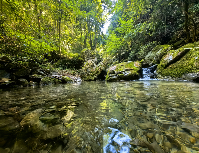(晃坳溪小流域上游水流清澈、植被葱郁。张卓 摄)