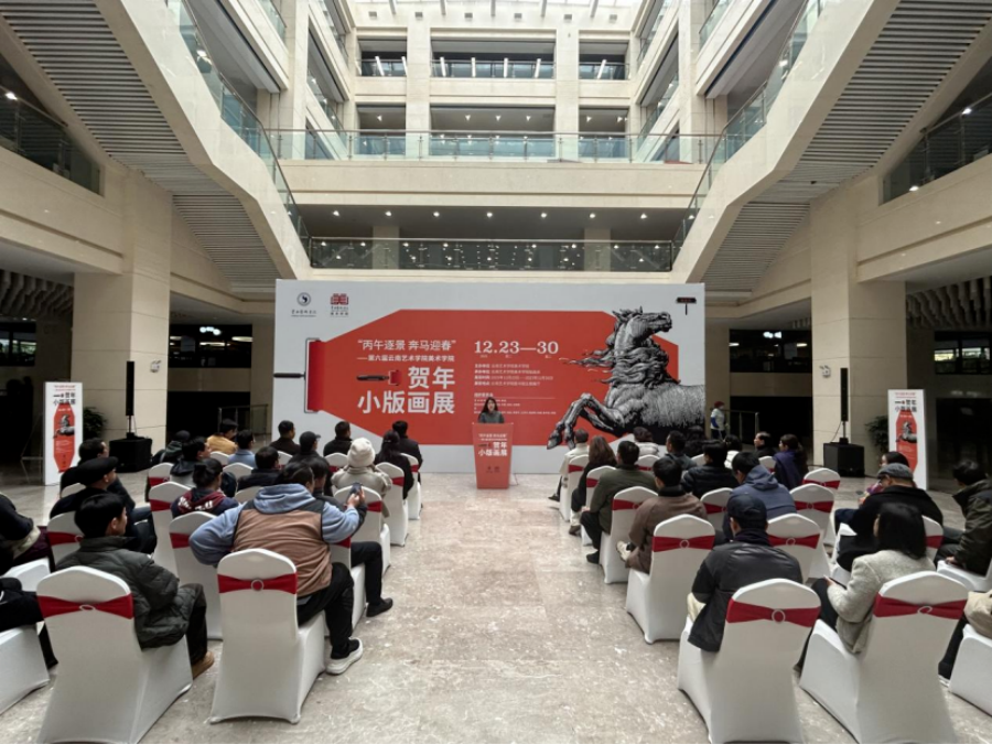 近日,云南艺术学院“丙午逐景 奔马迎春”第六届贺年小版画展在云南艺术学院图书馆开幕。本次展览由云南艺术学院美术学院主办、美术学院版画系承办,将持续至12月30日。