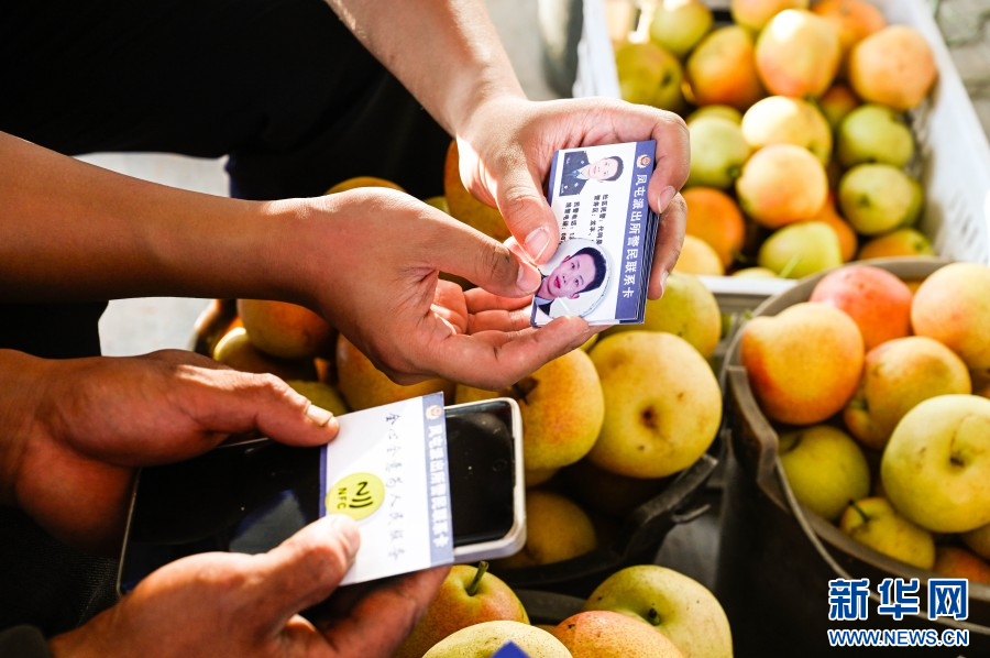 民警教群众使用带有NFC贴片的警民联系卡。新华网发(楚雄州公安局供图)