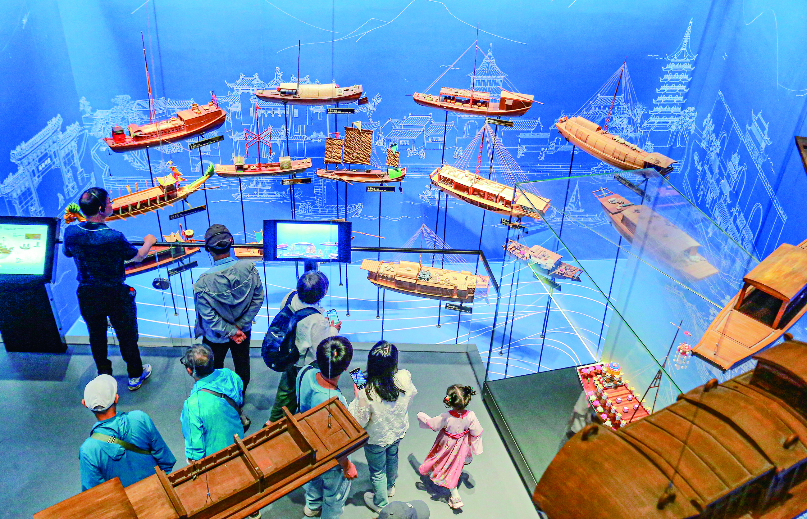 第三是提供多元沉浸化的新体验。“很多人说在我们馆参观特别费电。”郑晶笑着说,例如“运河上的舟楫”“5G大运河沉浸式体验区”等都是“吃”掉手机电量比较多的展厅。这座展厅融合了实体展陈和数字沉浸,活态化展示大运河百舸千帆的胜景,让人忍不住举起手机记录分享。