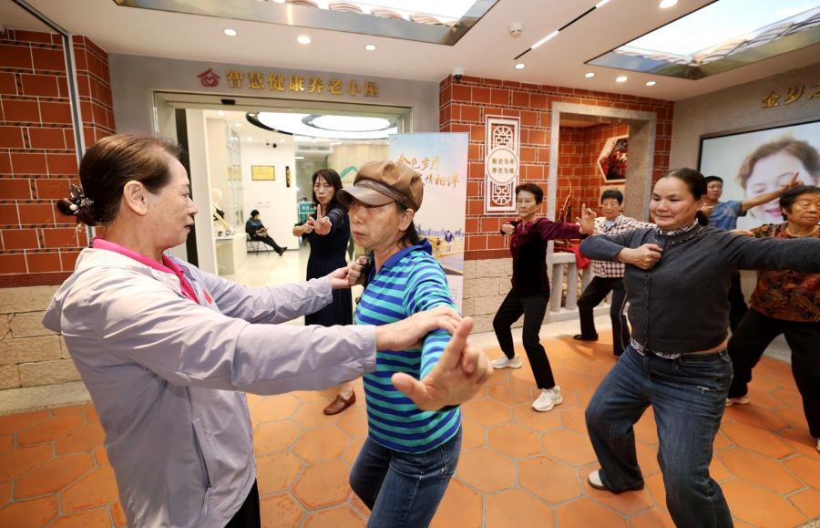 老年客户正在智慧健康养老小屋前的空地上打八段锦 中国农业银行厦门市分行供图