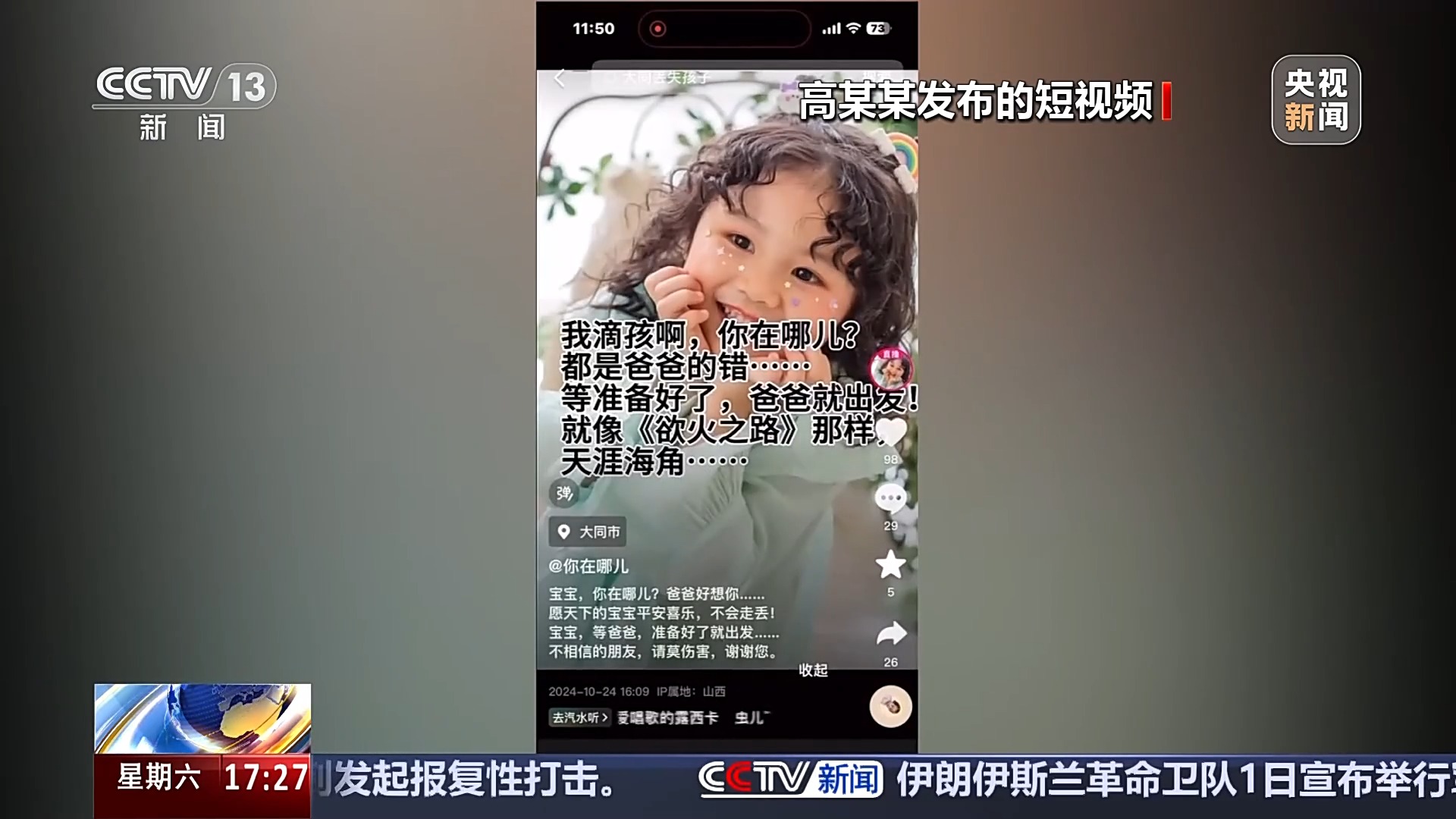 近日(10月25日),山西大同市一网民在网络上发布视频,称自己的孩子走丢了,引起广泛关注。警方展开调查走访,经过排查取证,最终确定这是一起网络谣言案件。