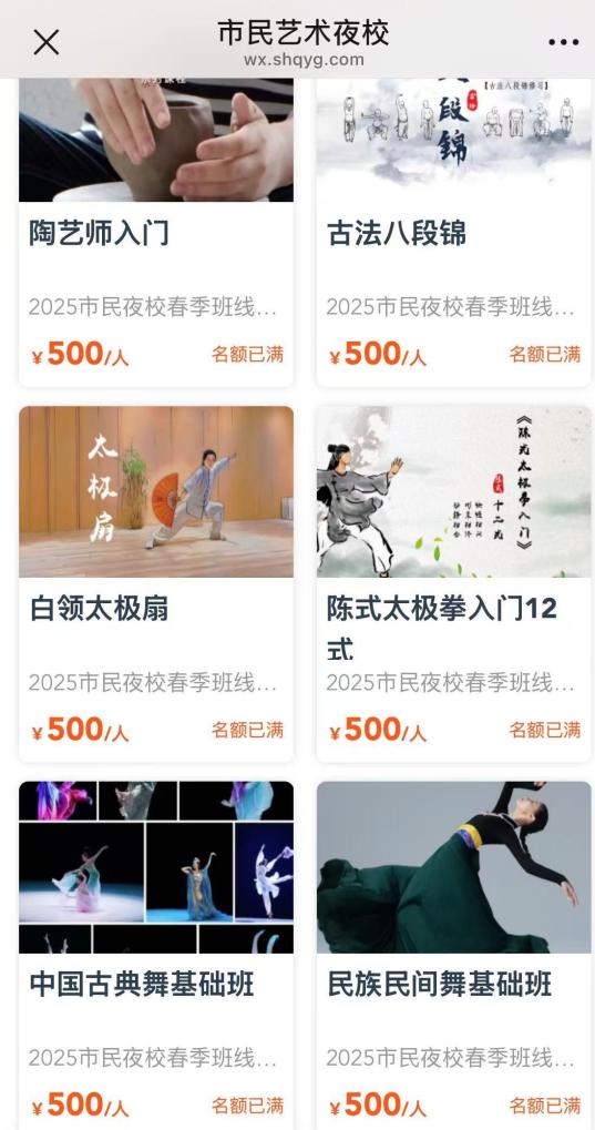 上海市民艺术夜校以创新课程矩阵重构夜间消费图景。今年上海市民艺术夜校春季班课程一上线,很多热门课程几秒内就名额全满,覆盖生活美学、艺术入门、非遗传承、健康养生、职业技能等多个领域。