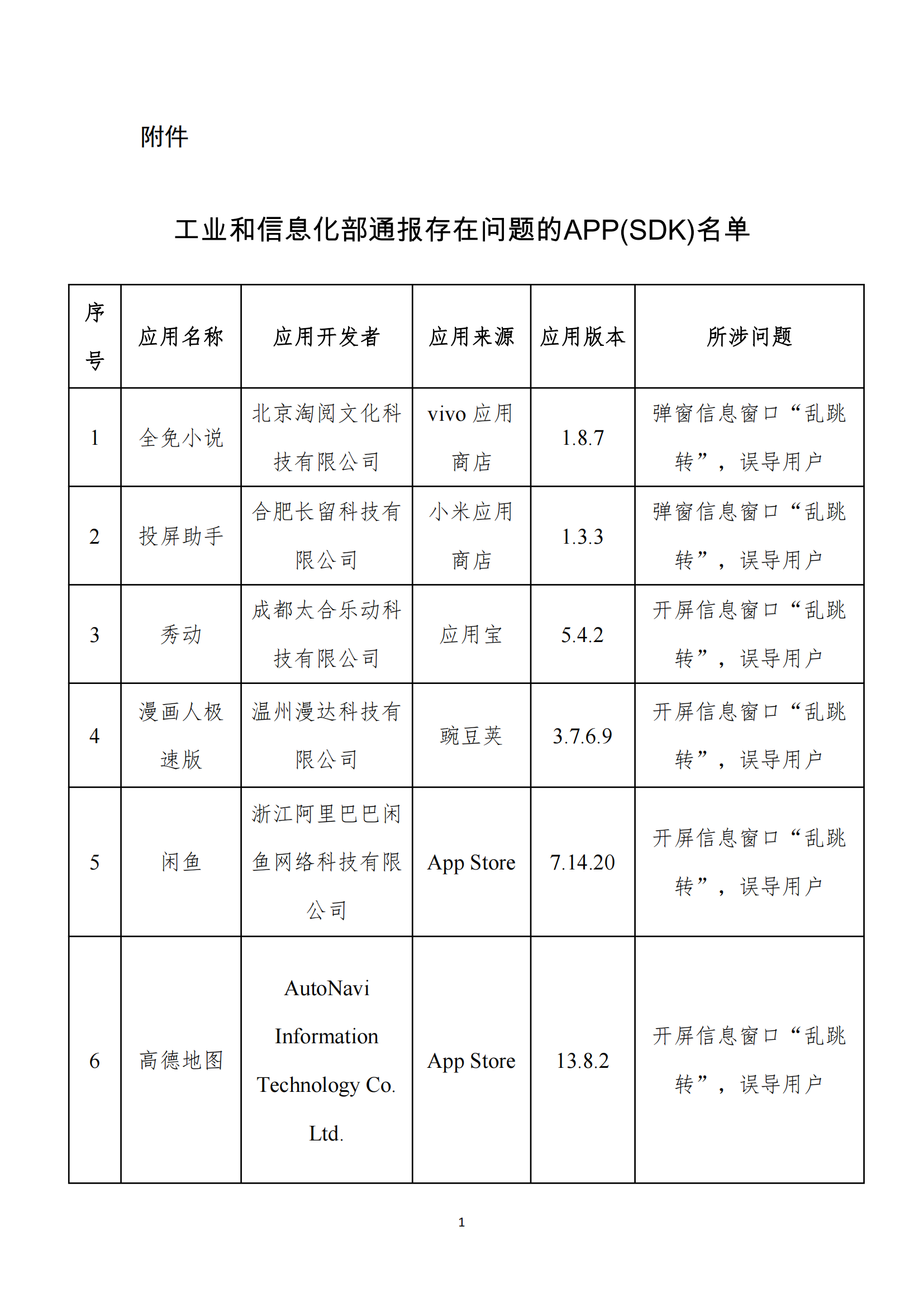 附件:工业和信息化部通报存在问题的APP(SDK)名单