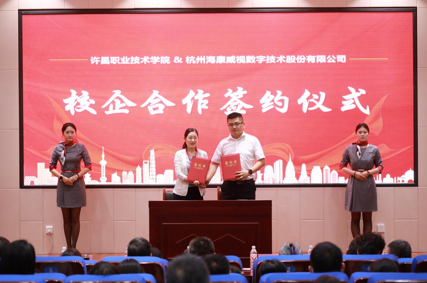 在签约环节,许昌职业技术学院与新华网股份有限公司、新华三技术有限公司、百度(中国)有限公司、杭州海康威视数字技术股份有限公司四家行业领军企业签署战略合作协议。根据协议,各方将在人工智能、数字安全等领域开展深度合作,共建产业学院和实训基地,进一步推动教育资源和产业资源的深度整合,打造产教融合新典范。