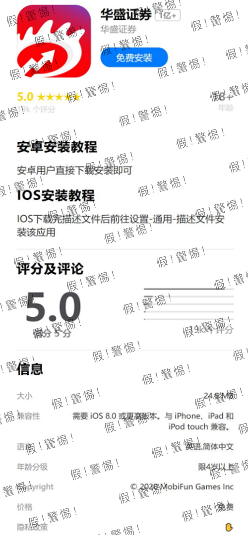 (三)有网友向投资者虚假宣传开通所谓“高级账户”可以购买涨停板股票,并向投资者发送了名为“华盛证券”的假冒APP下载链接,https://0o9i8u7y6.oo98.icu:6512/jhs.html。