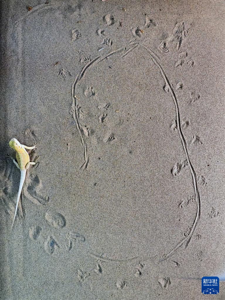 这是2025年9月22日在中国无锡拍摄的现生蜥蜴的痕迹学对比实验。新华社发(研究团队供图)