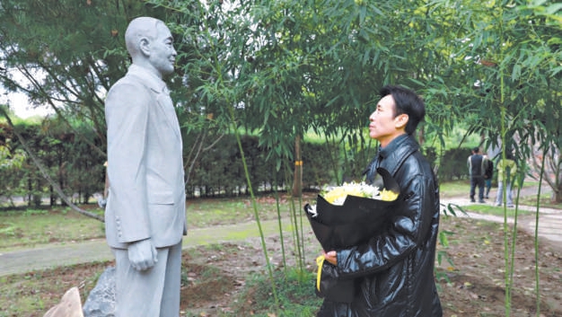 于和伟代表主创团队向吴石烈士敬献鲜花