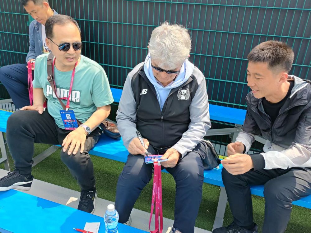 聊天结束时,米卢主动与记者合影、握手。随后,周围又源源不断地有粉丝和工作人员来跟他互动。20多年前,米卢曾努力将“快乐足球”的理念传递给国足。如今,一边看着十七八岁的少年们踢球,一边跟粉丝们互动,他和从前一样快乐、放松。