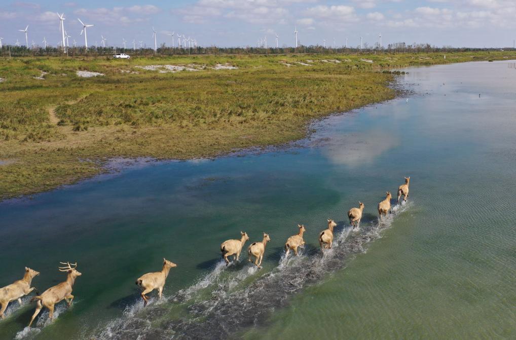麋鹿种群扩张也带来了环境超载、部分植被退化等“甜蜜烦恼”。为此,保护区已开展麋鹿迁地保护实验,向更多适合麋鹿生长的地方播撒生物多样性的“种子”。