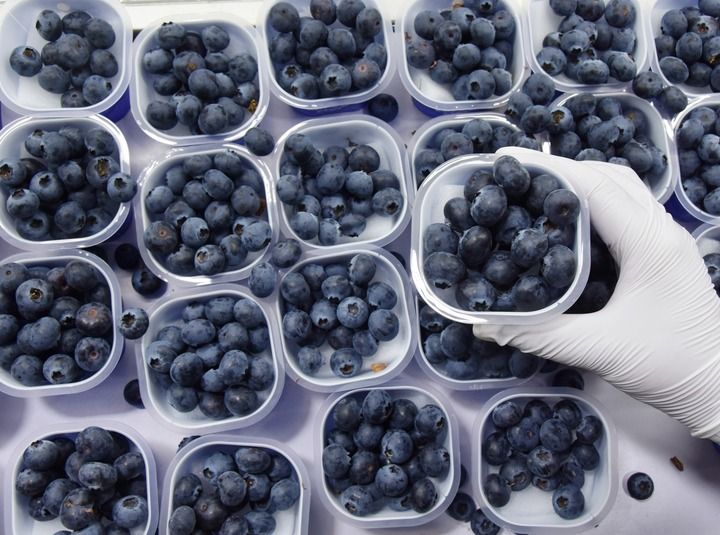 2025年2月28日,农户在云南省红河哈尼族彝族自治州蒙自市草坝镇缤纷农业示范基地的冷藏库里分拣蓝莓。新华社发(薛莹莹摄)
