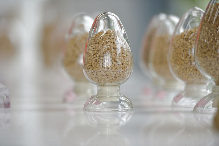 这是2024年5月31日在位于河南新乡的中原农谷国家生物育种产业创新中心神农种业实验室拍摄的种子样本。新华社记者 刘力航 摄