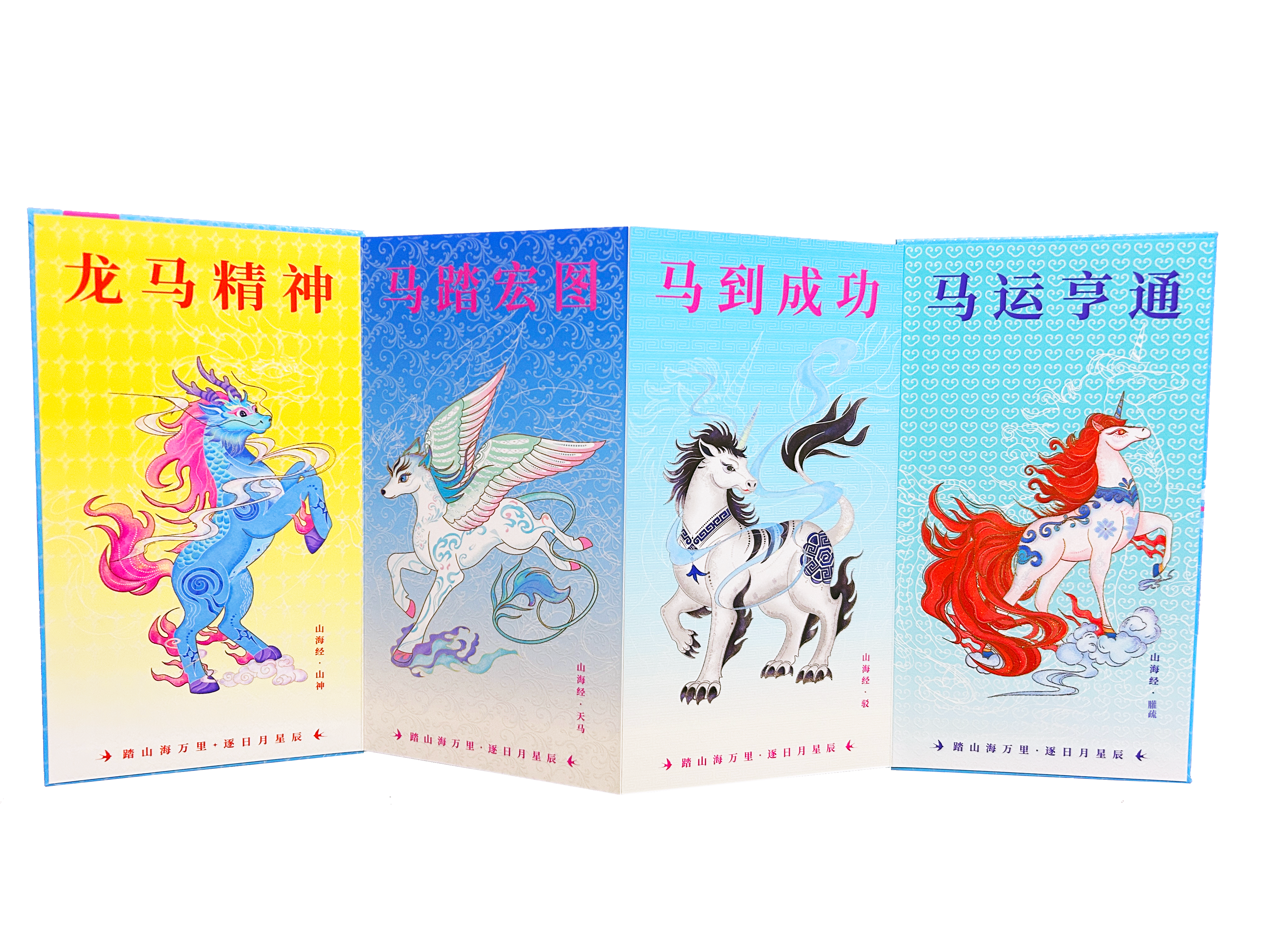 “我想让《山海经》里的瑞兽,走进现代人的新春祝福。”在北京印刷学院产品设计工作室,朱梦雪指着桌上的《山海送福》设计原稿,眼里满是热忱。作为产品设计专业的学生,她趁着马年新春契机,仔细研读中华古籍《山海经》,比较多个版本的古籍记载和形象,精心挑选出“山神”“天马”“驳”“䑏疏”四种马形瑞兽作为创作母题。“这四种瑞兽都寓意吉祥,尤其贴合马年‘奔腾向前’的精气神,很适合作为新春送福的载体。”