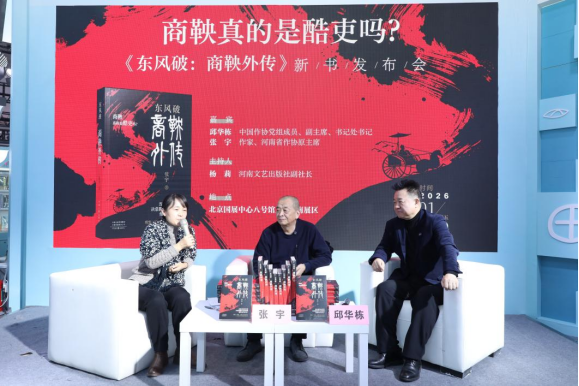 1月9日,河南文艺出版社在北京国展中心举办《东风破:商鞅外传》新书发布会,活动以“商鞅真的是酷吏吗?”为主题,邀请中国作家协会副主席邱华栋、著名作家张宇(本书作者)展开深度对谈,共同解读这部充满现代性反思的历史小说。发布会由河南文艺出版社副社长杨莉主持,《当代》杂志主编徐晨亮亦莅临现场并上台分享了他的观点。