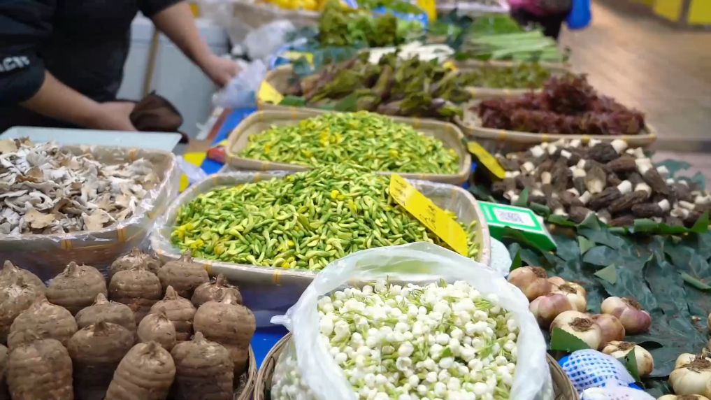春暖花开之际,云南各种特色山茅野菜大量上市,“逛菜场”成为跨国游客体验云南生活的新方式。