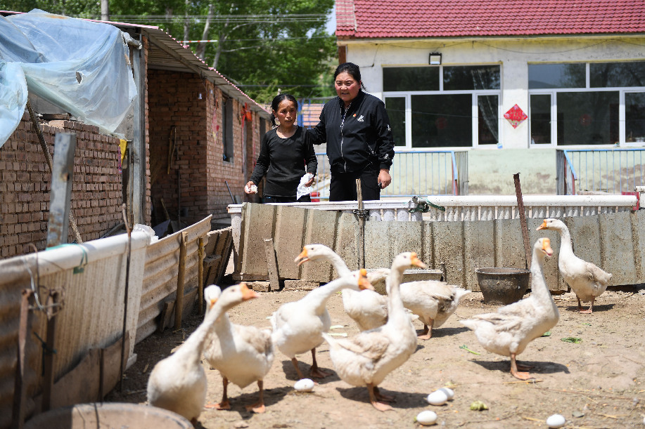 老伴儿去世后,刘老太独自撑起这个家。赵会杰说,刘老太人穷志不短,靠着产业扶贫资金和小额扶贫贷款,盖起猪圈、鹅舍,现在养着两头母猪、十只鹅,还在小院里开出二分地,种上了中药材,加起来年收入可达3万多元,去年正式脱贫。