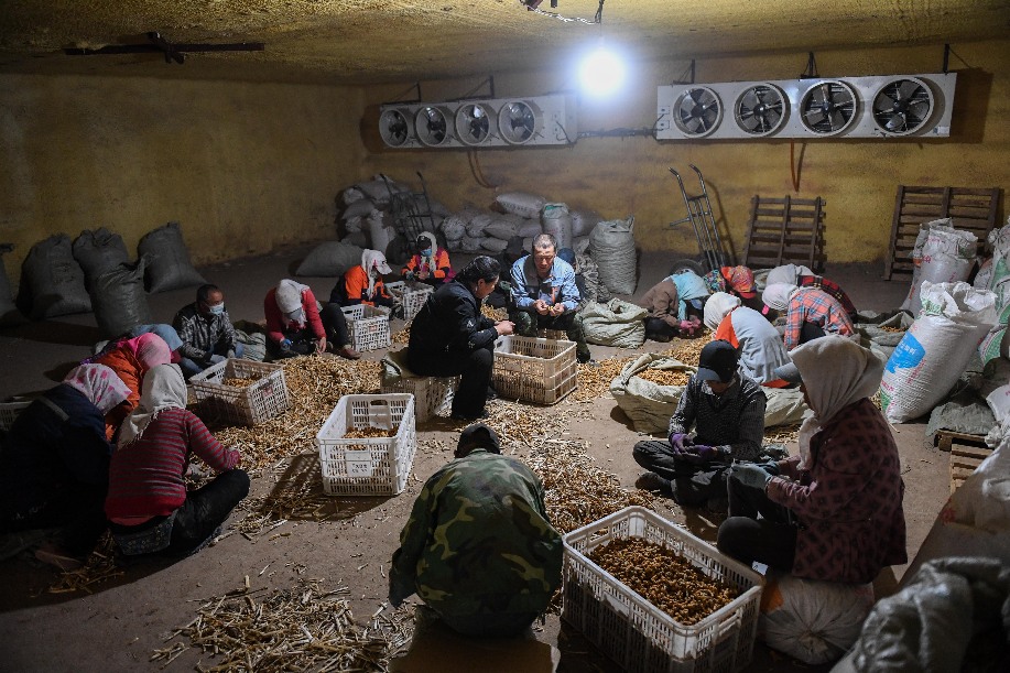 ↑在赤峰市松山区大庙镇小庙子村中药材合作社,村民在筛选中药材(5月14日摄)。新华社记者 刘磊 摄