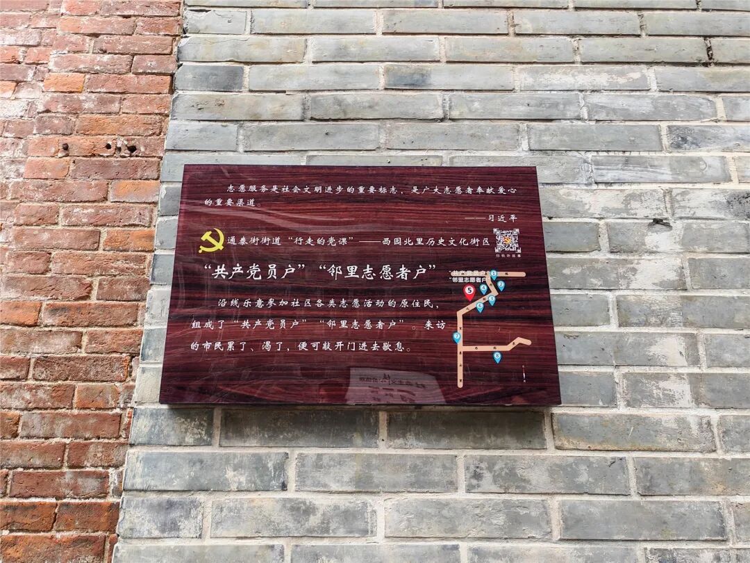 西园北里巷内“共产党员户”“邻里志愿者户”标识