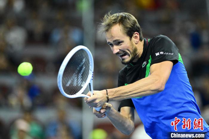 10月4日,梅德韦杰夫在中网男单决赛中。中新社记者 田雨昊 摄
