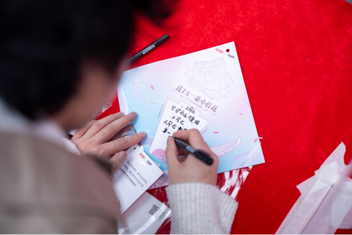 玩家在卡纸上书写对游戏角色的寄语