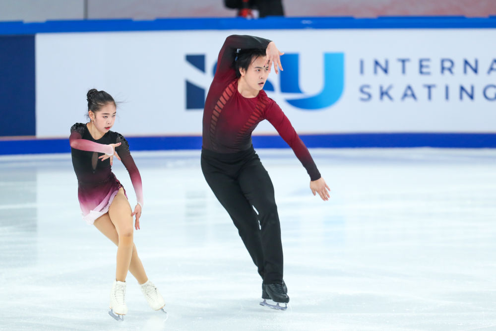 10月24日,隋文静(左)/韩聪在比赛中。新华社记者 黄伟 摄