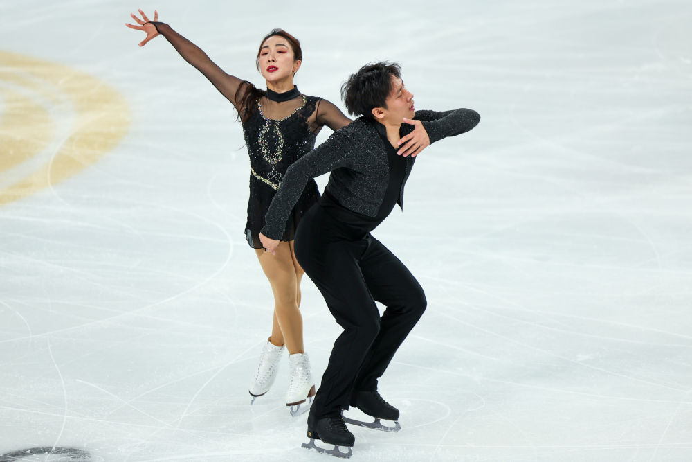 隋文静和韩聪在2022年北京冬奥会夺冠后就离开了赛场,直到今年6月才为了米兰冬奥会宣布复出。两人当日在8对选手中第一个出场,选曲《卡门》节奏鲜明、热情奔放。隋文静在单跳时落冰摔倒;这对搭档的同步性比鼎盛时期差一些,不过抛跳和捻转依然出色,表现力也依旧是世界级。