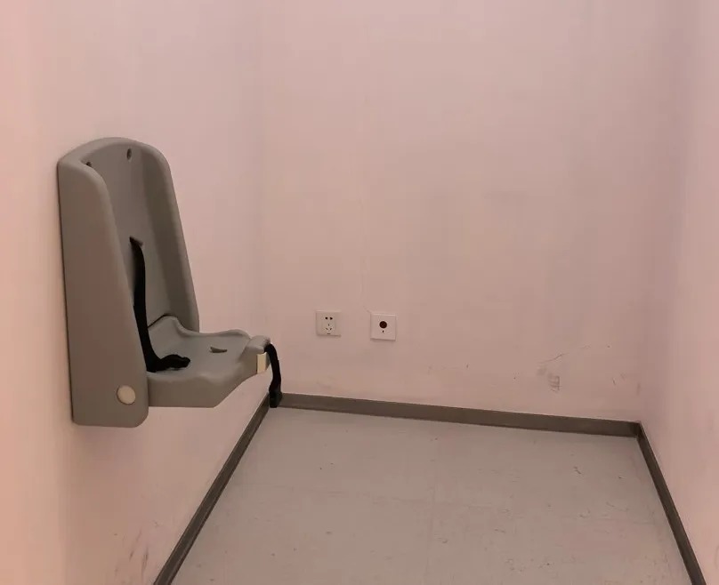 作为改造后焕新亮相的商圈,隆福寺南坊在多个楼层设有母婴室。记者随机选择一间,进入后发现左侧为洗手池,右侧则是两个小隔间。不过,隔间内除了壁挂式婴儿安全座椅和插座以外,没有配备其他可用设施。