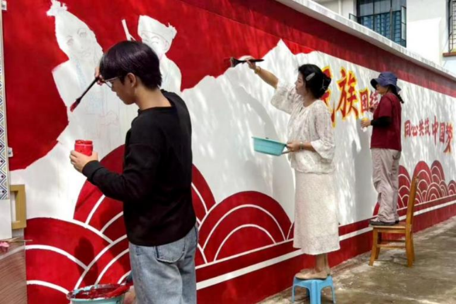 在教学之余,支教师生还积极参与景洪市、鲁甸县受援中小学的校园文化建设,将民族团结进步宣传教育融入墙绘,努力为孩子们的校园生活增色添彩。