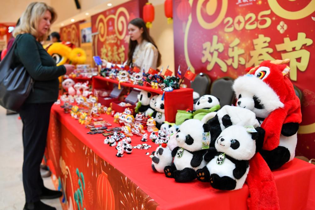 2025年1月28日在俄罗斯莫斯科举行的新春庙会活动上拍摄的文创产品。 2025年10月18日,以“文明重光:文化遗产与人类文化多样性”为主题的第三届“良渚论坛”在浙江省杭州市开幕。 2025年8月22日,在瑞士伯尔尼中国文化中心,嘉宾在由该中心与恭王府博物馆联合主办的“安善萃锦——中式生活美学展”开幕式上体验制作扇子。 2024年7月5日,在泰国曼谷的泡泡玛特店内,一名女子在拉布布玩偶前自拍。 实施入境旅游促进计划