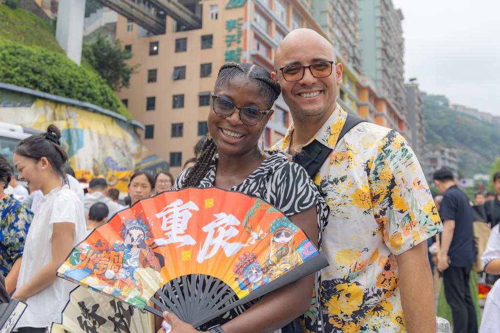 2025年10月3日,加拿大游客克里斯提安(左)和家人在重庆市渝中区李子坝游玩。近年来,不断优化的入境政策为境外游客赴华提供了更多便利,“来华旅游攻略”“赴华购物清单”等成为国外社交媒体热门搜索关键词,“China Travel”的热度延续至今。山城重庆凭借其独特的城市景观和风土人情,吸引不少外国游客前来品尝美食、打卡景点、体验文化。 2025年7月17日,一名留学生(左)带着父母在位于上海市南京路步行街的一家礼品店内品尝特色食品。在免签“朋友圈”持续扩容以及离境退税“即买即退”政策的推动下,“中国游”持续升温,“中国购”也成为入境游新趋势。作为入境游“第一站”的上海见证了我国强劲的入境游消费活力。 站上新起点