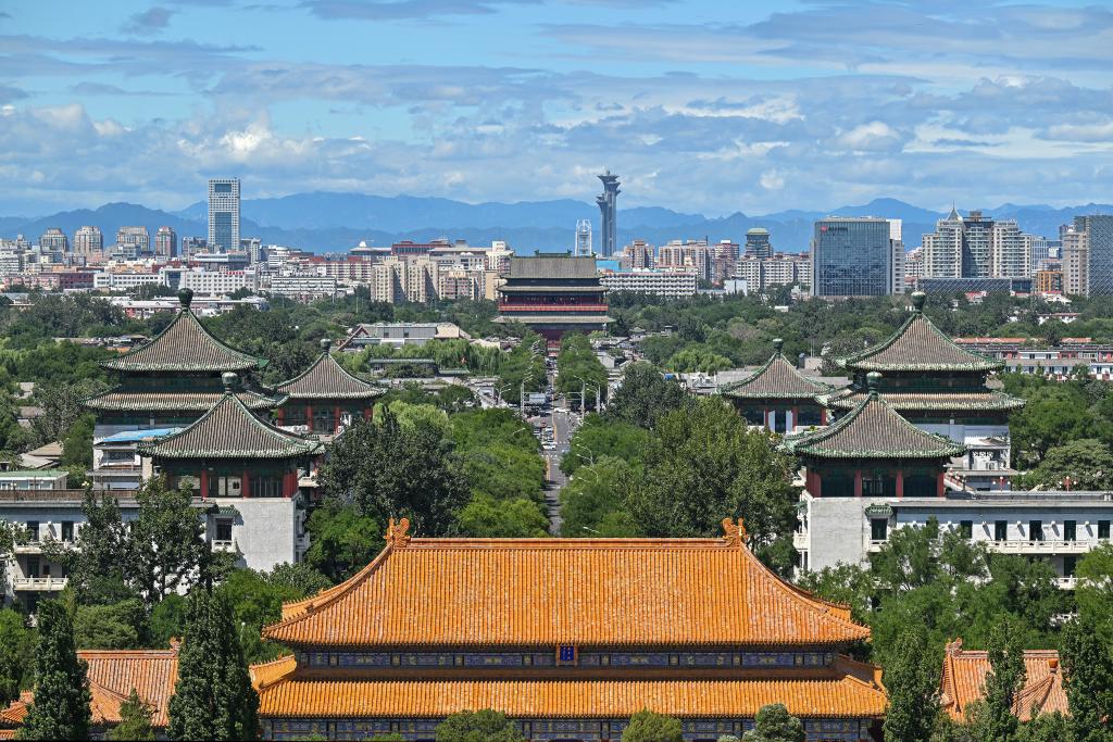 这是2024年8月12日在景山上拍摄的北京中轴线风光。 优质公共文化服务覆盖城乡基层