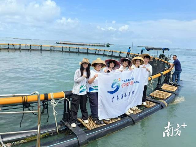 广东海洋大学“百千万工程”突击队在雷州市覃斗镇流沙村的“海威一号”重力式网箱上调研。
