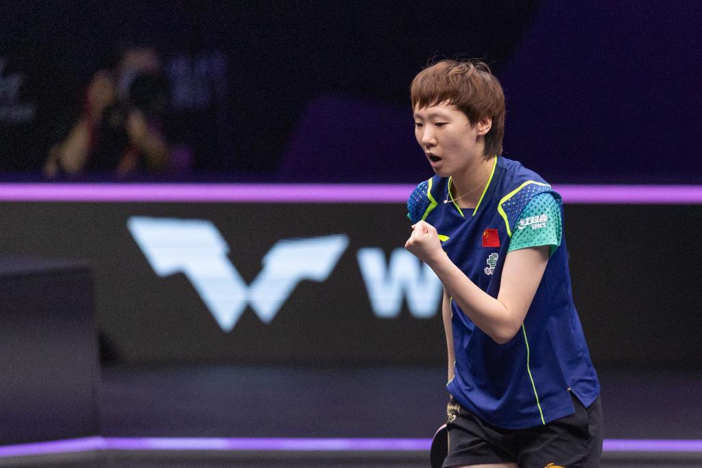 当日,在重庆进行的世界乒乓球职业大联盟(WTT)重庆冠军赛女子单打八分之一决赛中,中国选手王曼昱3比0战胜中国台北选手简彤娟,晋级八强。