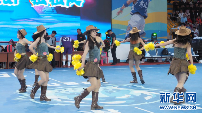 啦啦队为比赛球员加油助威。
