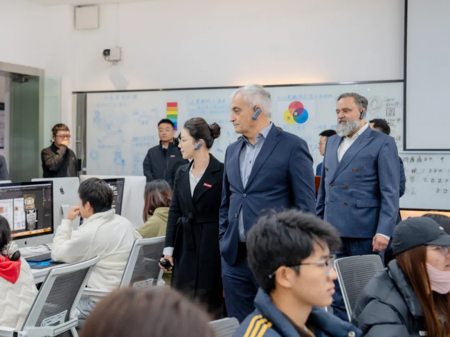 访校期间,德方代表一行实地参观了云南工商学院的校园环境、实训基地与智慧教室,深入了解了学校“以学生为中心”的办学理念与产教融合实践。德方代表对学校先进的硬件设施、学生参与的真实企业项目表现出浓厚兴趣,多次驻足与师生现场交流,并高度关注学校的实训条件与育人成果。