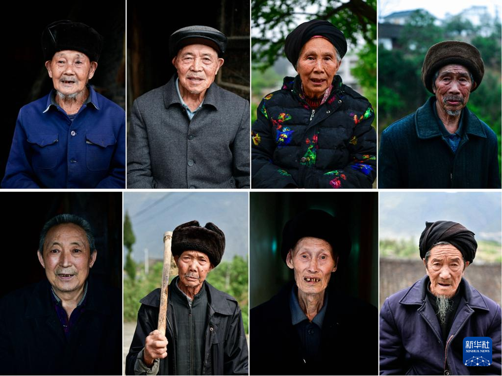 拼版照片:这是当年参加修建贵州省毕节市七星关区生机镇绝壁天渠的部分修渠人。上排左起依次为:刘新芝、许光福、杨光礼、刘明昌;下排左起依次为:单怀中、许光泽、刘显荣、胡加荣(4月24日至4月25日摄)。
