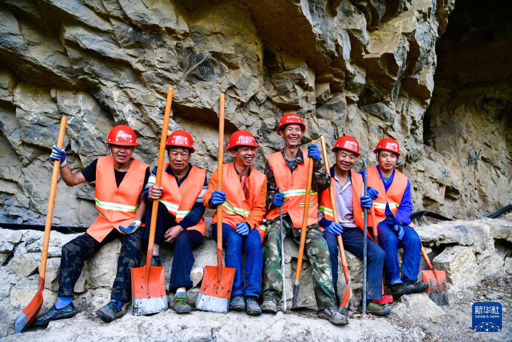 护渠队员们在贵州省毕节市七星关区生机镇巡护高流天渠途中(4月24日摄)。
