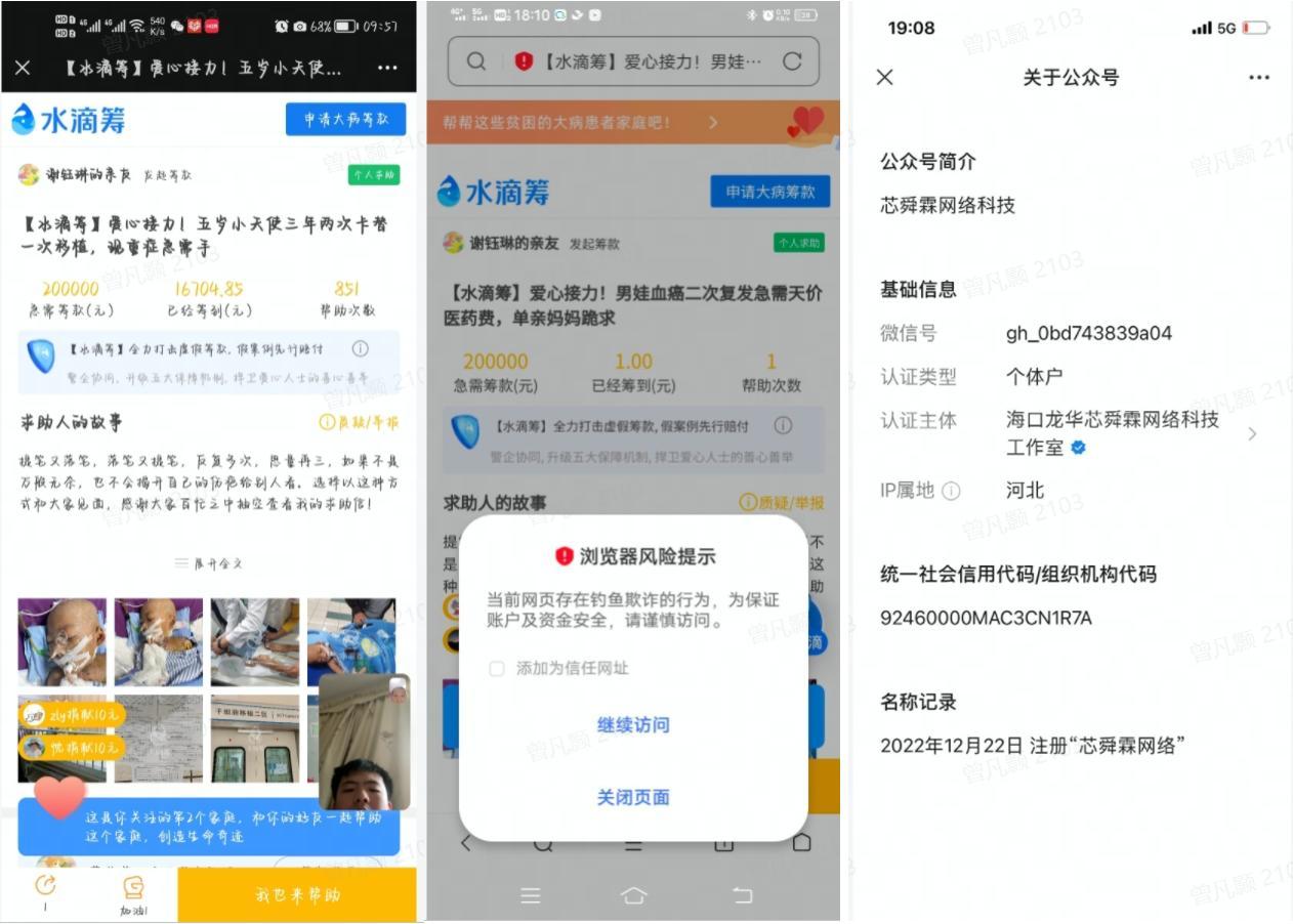 今年3月9日,辽宁省阜新市公安局海州分局全链条侦破一起利用伪造水滴筹链接骗取筹款的电信网络诈骗案件,斩断了一条伪造水滴筹网站链接、收款接口和发布虚假筹款信息黑灰产业链条,这起案件为全国首例。