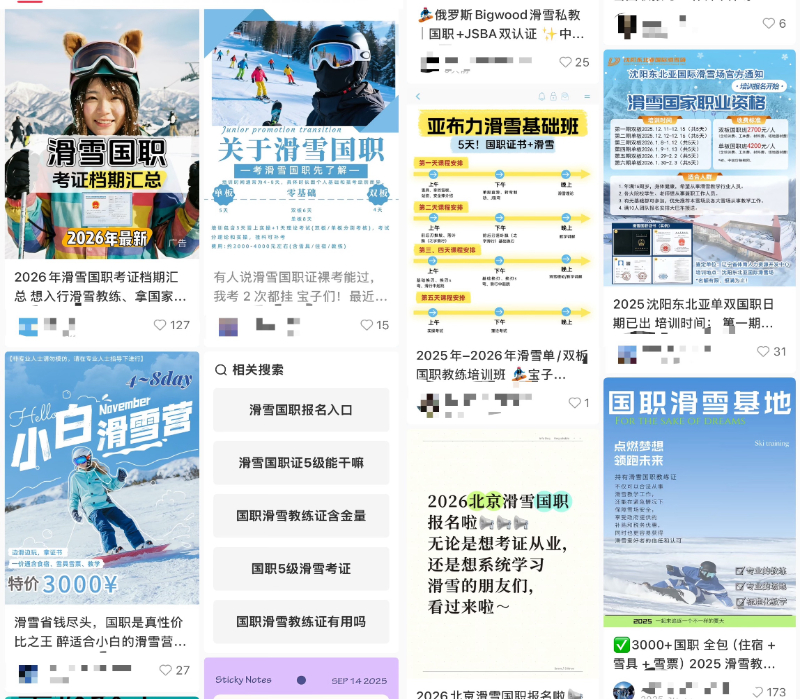 △社交媒体平台上宣传的“滑雪教练国职证”培训班