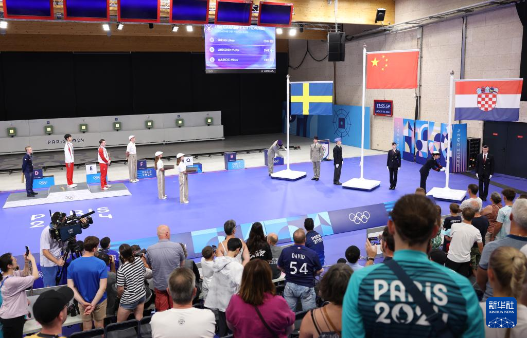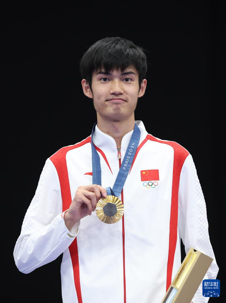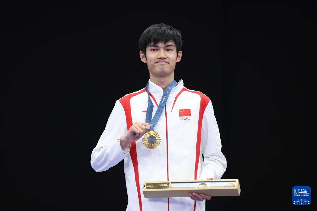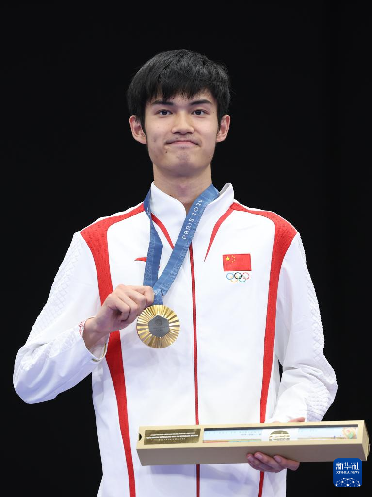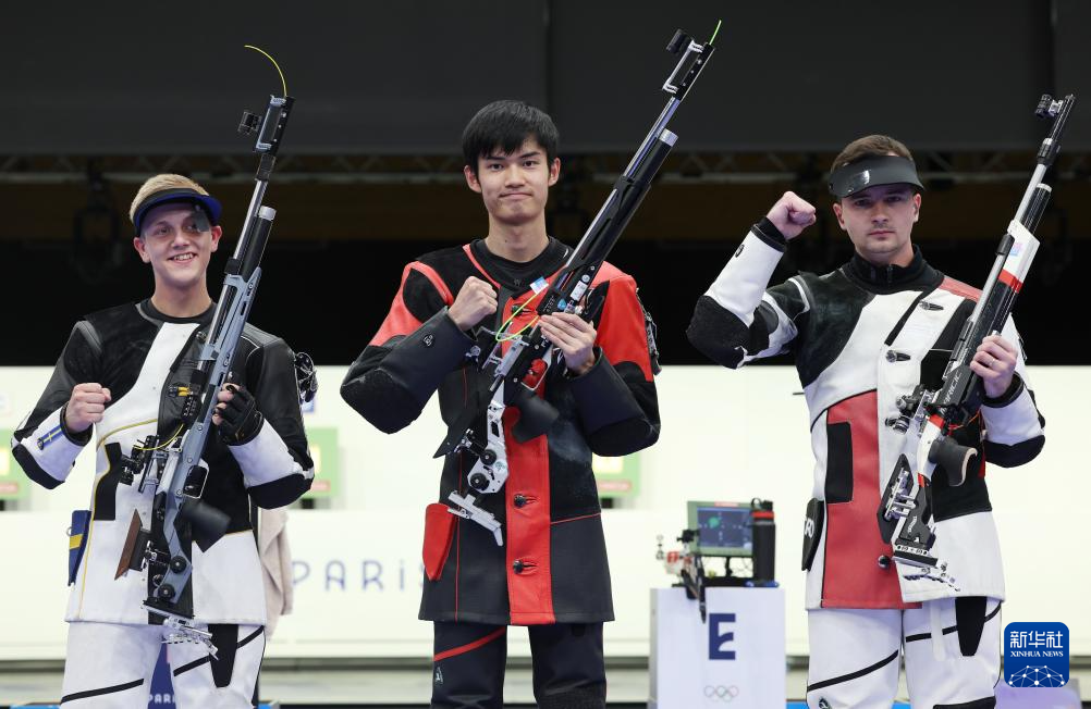 当日,在法国沙托鲁举行的巴黎奥运会射击男子10米气步枪决赛中,中国选手盛李豪获得冠军。
