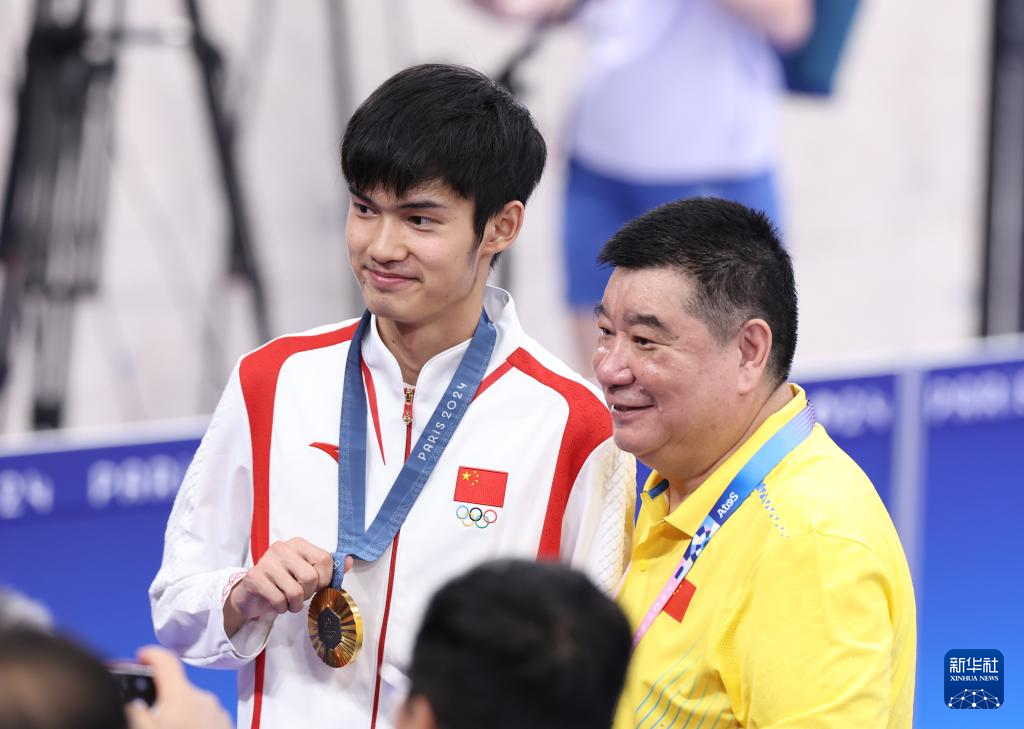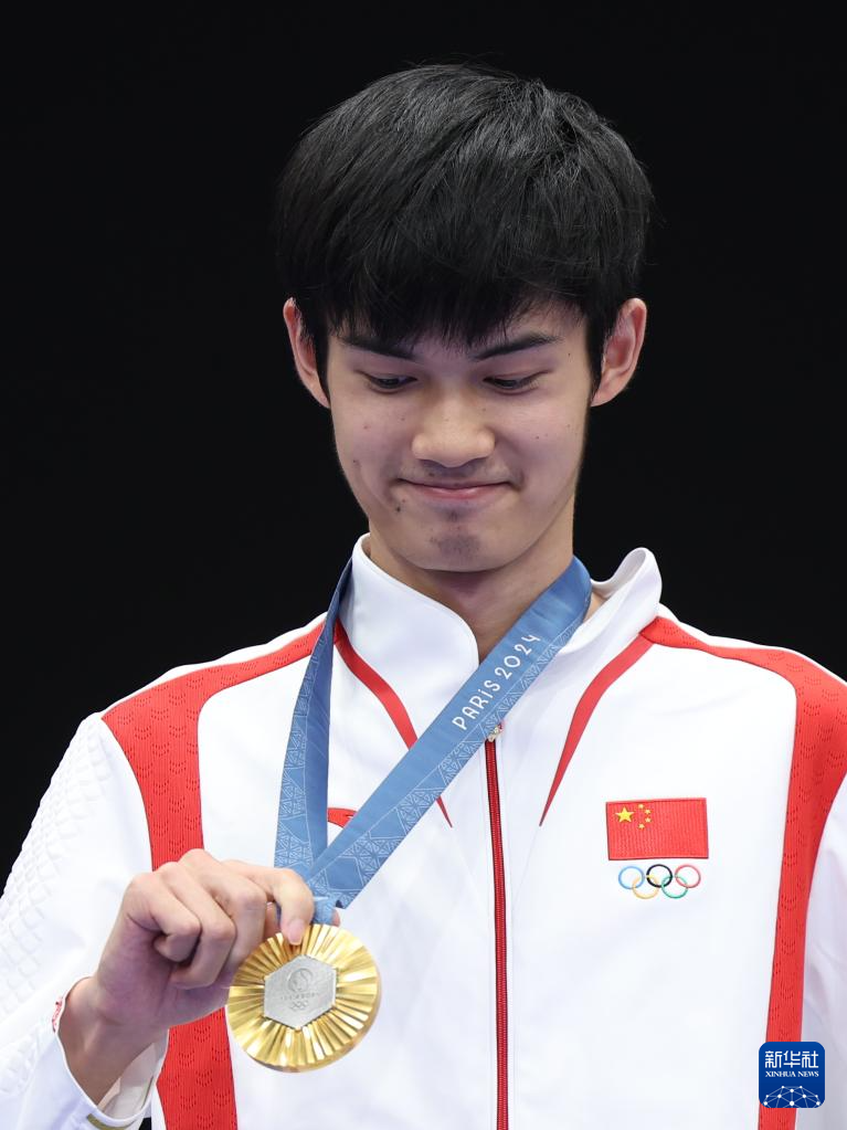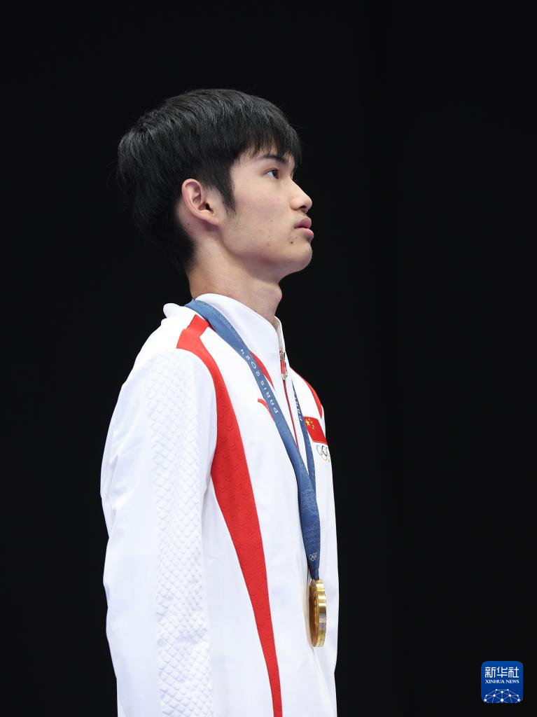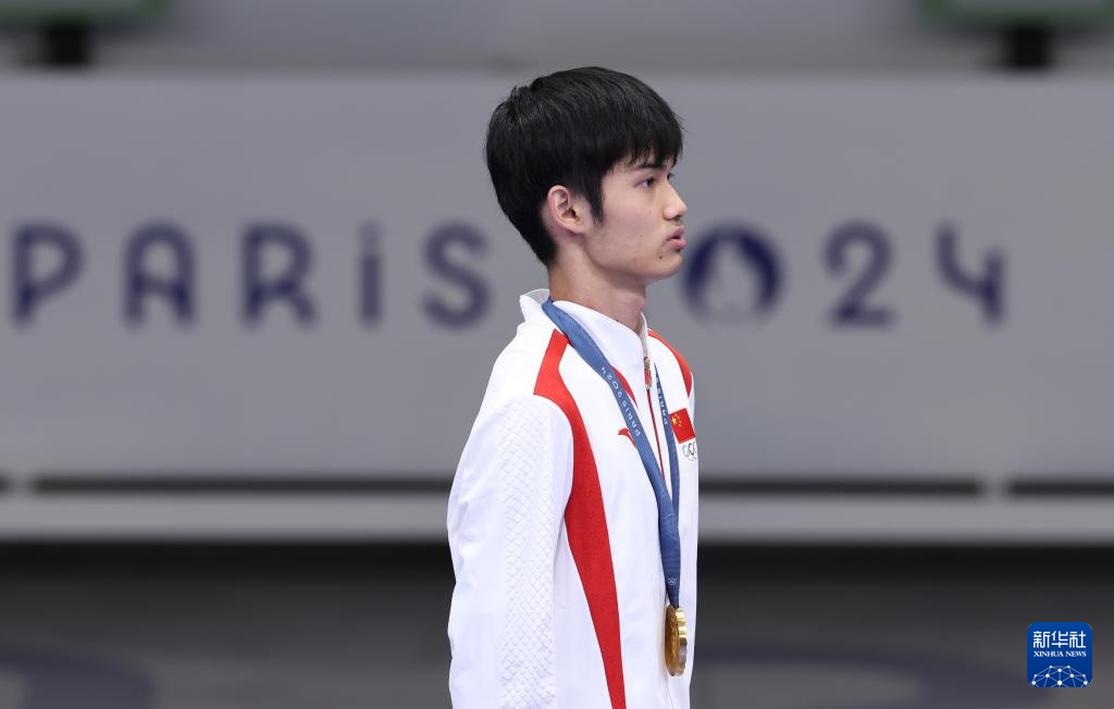 7月29日,冠军中国选手盛李豪在颁奖仪式上。新华社记者 赵丁喆 摄