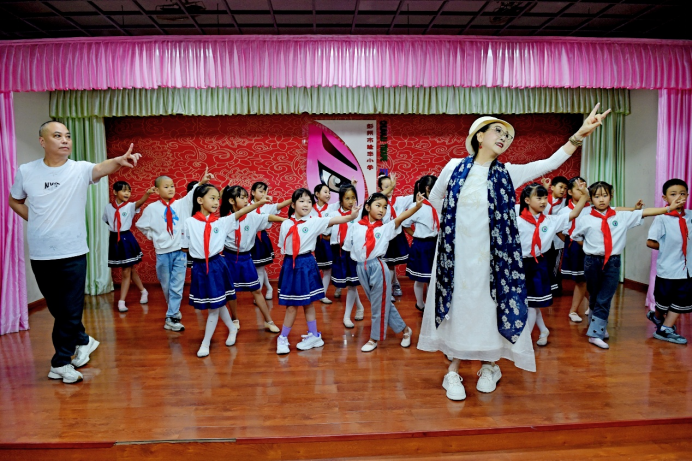 9月16日,在彭州市隆丰小学,开展了以国家级非遗项目川剧为主题的开学第一课。川剧国家级非遗代表性传承人刘芸走进校园,与隆丰小学的师生,共同展示“唱念做打”基本功、与“手眼身法步”表演技法,“三代同台”呈现出非遗川剧的蓬勃生机。