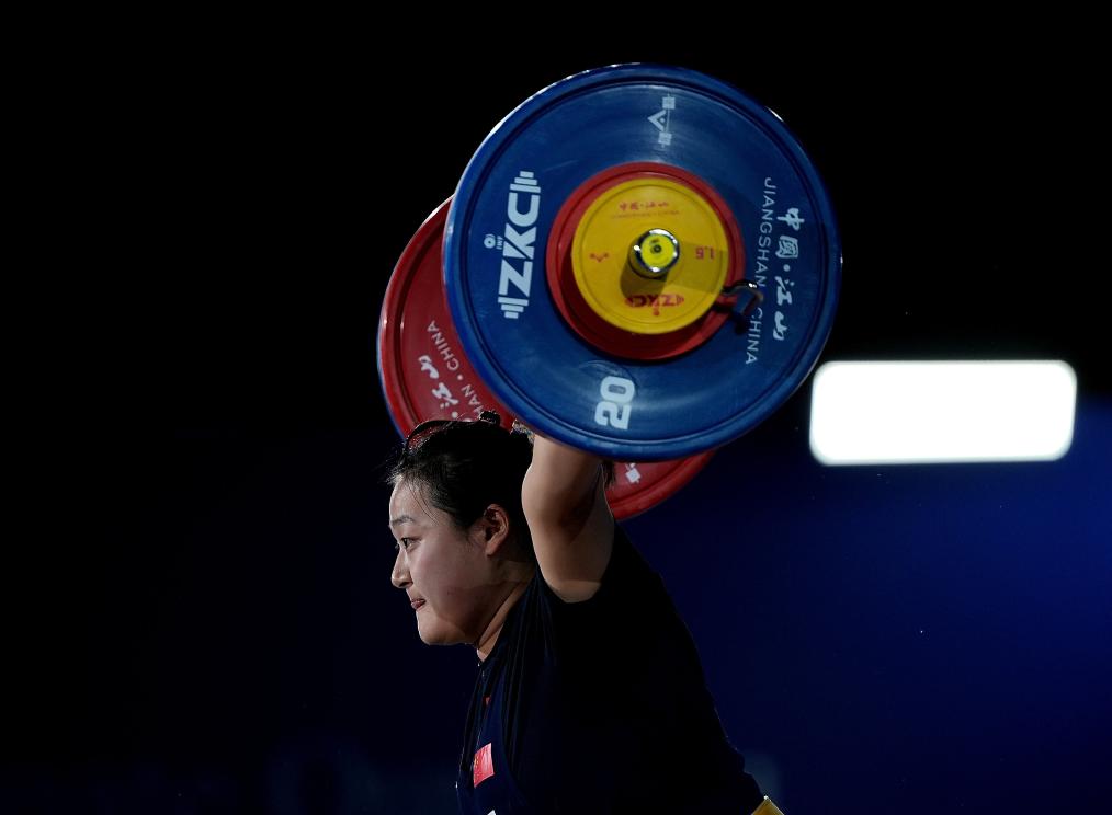 5月14日,中国选手田东苹在抓举比赛中。最终,她获得抓举、挺举、总成绩三项冠军。新华社记者 侯昭康 摄